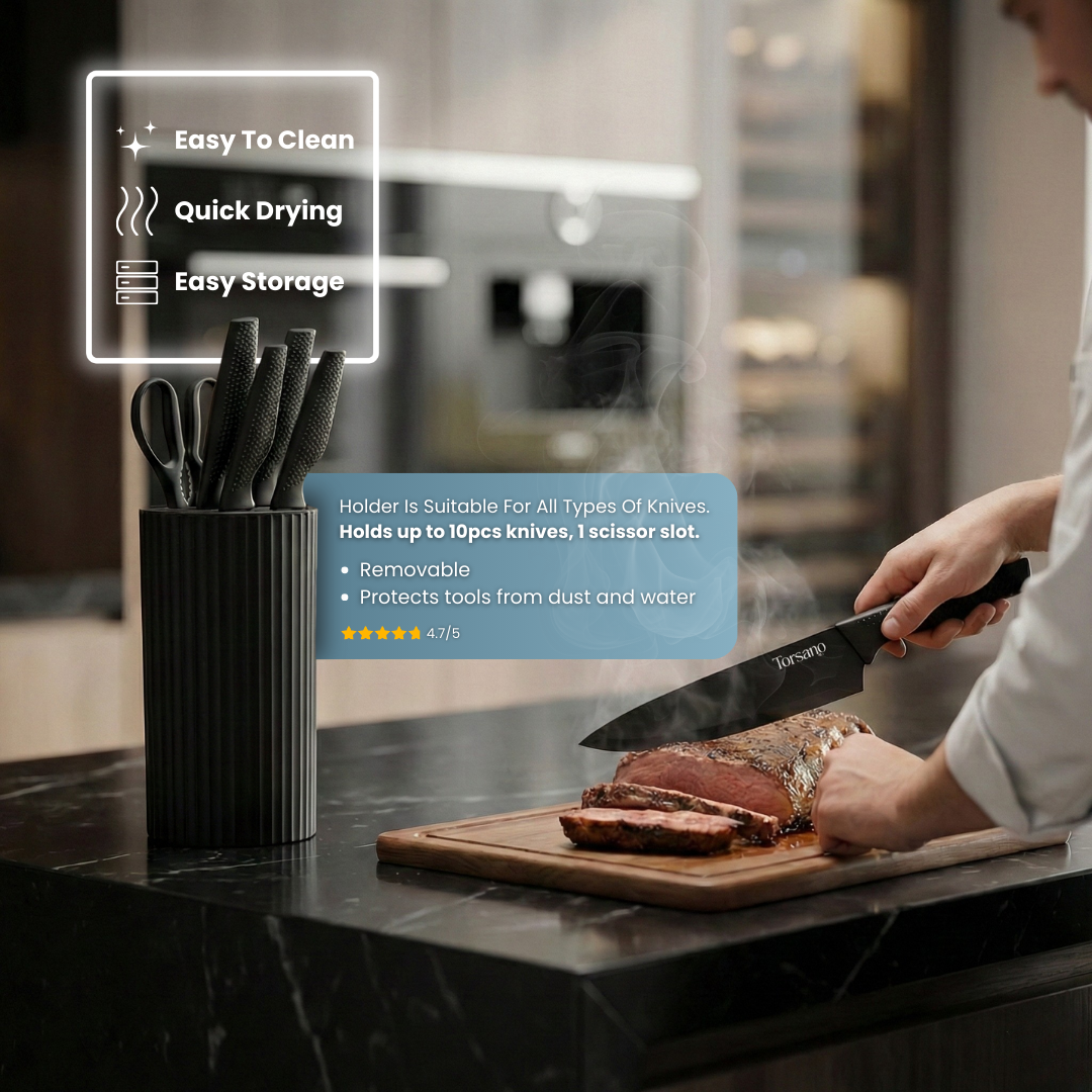 While dishwasher-safe, we recommend drying them immediately after cleaning. Regular honing keeps the blades sharp and efficient.
